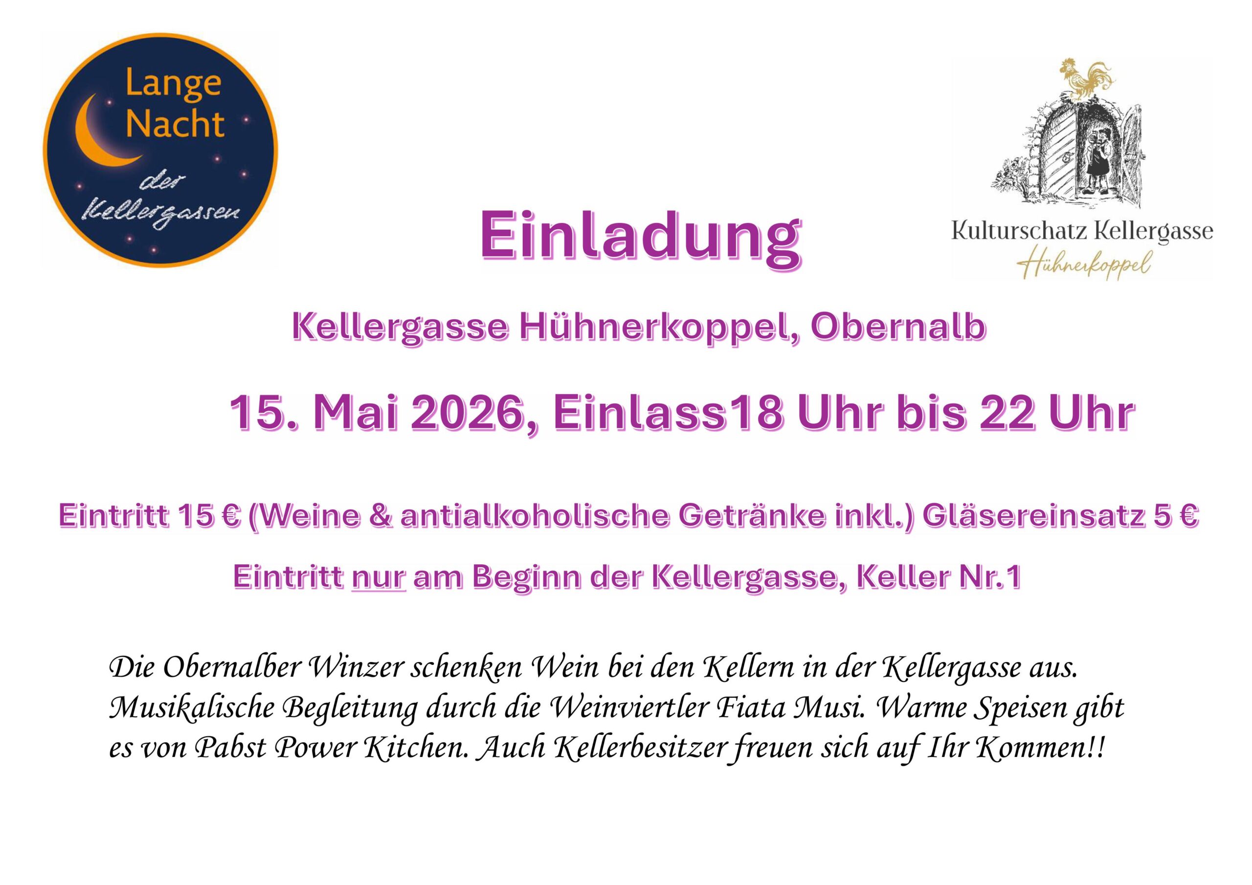 ANKÜNDIGUNG: Lange Nacht in der Kellergasse Hühnerkoppel, Obernalb